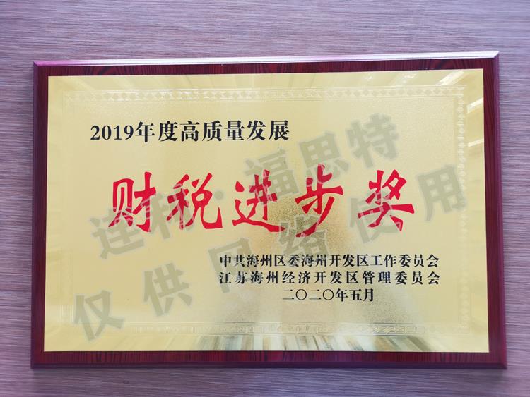 此次被授予2019年度高質(zhì)量發(fā)展“財稅進(jìn)步獎”是一種榮譽(yù),更是一種激勵。公司上下將繼續規范提升企業(yè)管理水平,繼續發(fā)揮誠信納稅的模范作用,弘揚依法誠信納稅意識,為當地經(jīng)濟的發(fā)展做出積極貢獻,共同譜寫(xiě)城市發(fā)展的華麗篇章!